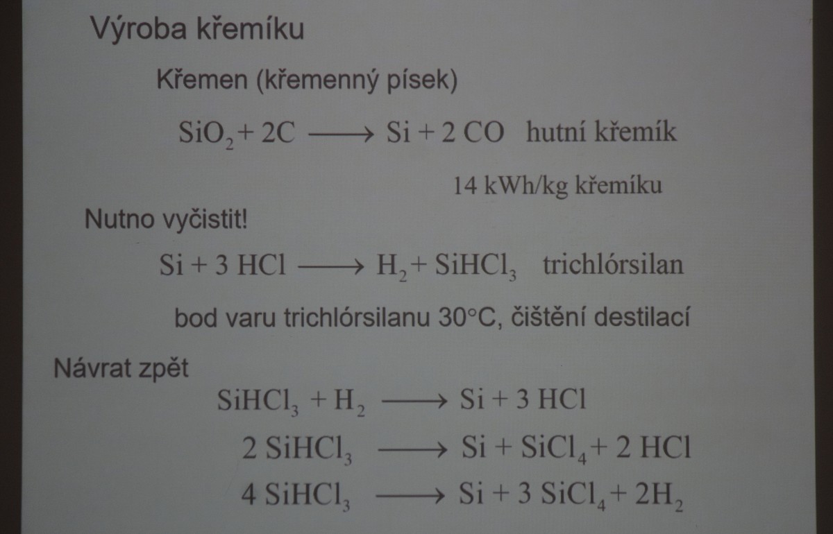 Chemické reakce popisující výrobu polykrystalu křemíku.