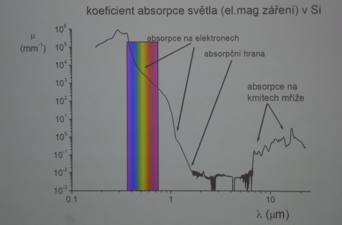 Graf zobrazuje koeficient absorpce elektromagnetického záření v křemíku.