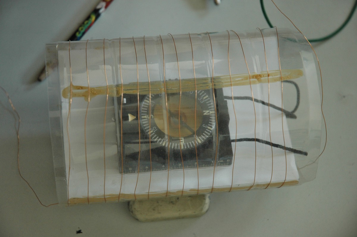 Střelka kompasu se v PET láhvi se závity správně vychyluje.