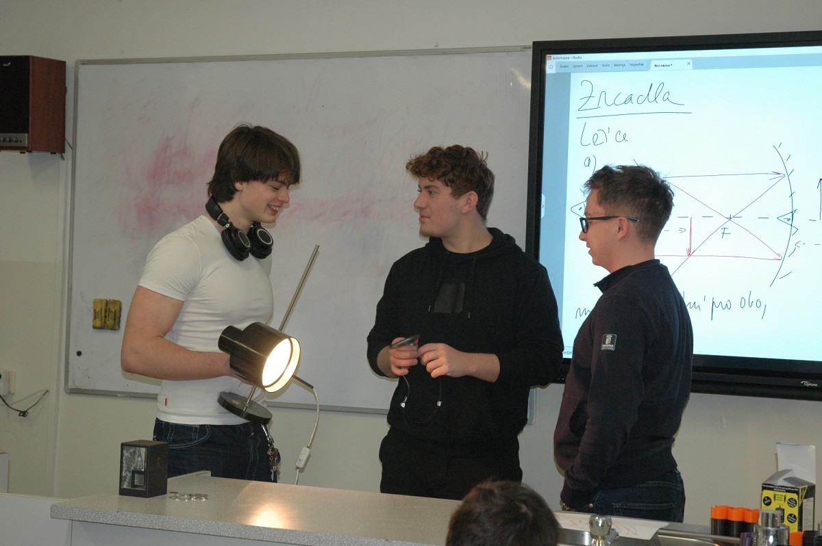 Živý obraz "Pacient u ušaře" zkoušeli žáci postavit i v této polovině třídy.